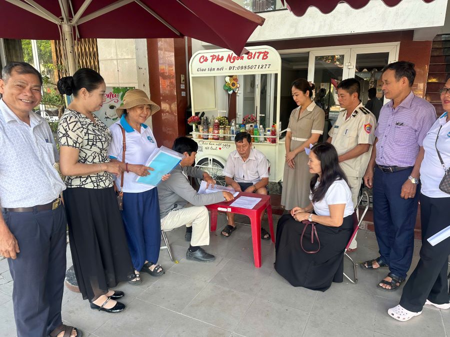 Da Nang - Hai Van Ward strengthens inspection and seizes many items encroaching on sidewalks, especially in coastal areas and schools.