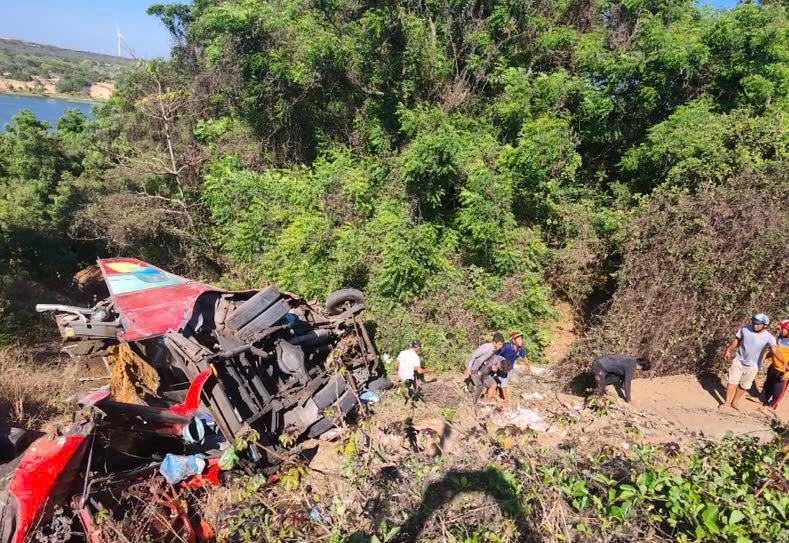 Lam Dong - A passenger car plunged into a sidewalk abyss by the lake in Bau Trang, causing many casualties.
