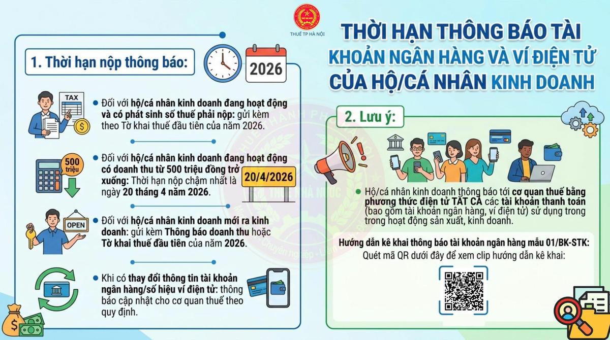 The tax authority reminds business households about the deadline for notifying bank accounts and e-wallets of business households and individuals.
