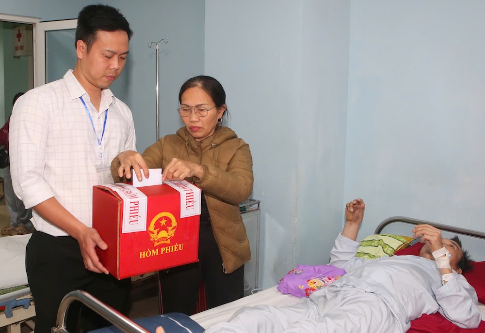 HUE - At Hue Central Hospital, election team officials bring ballot boxes to each treatment room, helping patients and their families exercise their citizenship at the hospital bed.