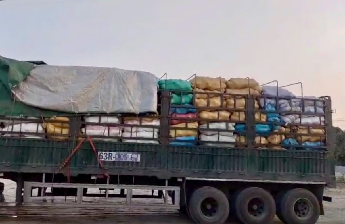 Lam Dong - Traffic Police handle cases of tractor-trailers carrying goods exceeding the height for queuing according to regulations and badges expired on the expressway.