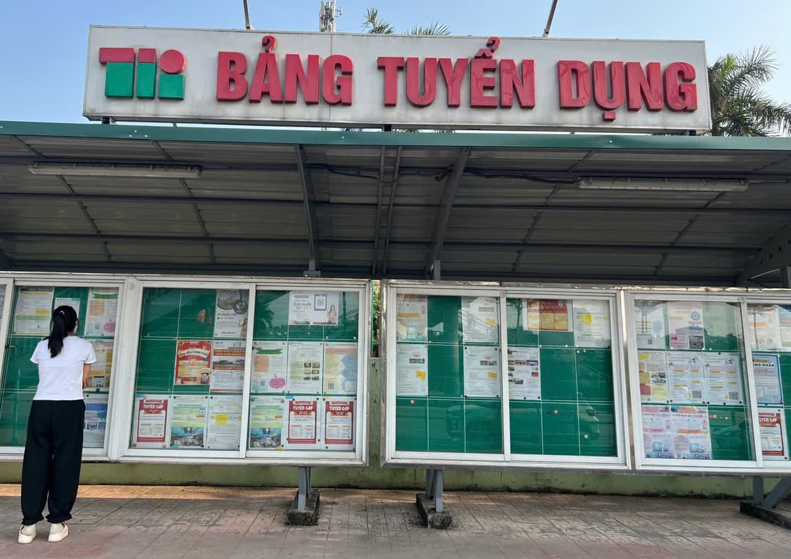 Currently, at recruitment points near the gate of Thang Long Industrial Park (Hanoi), many businesses have posted notices recruiting workers in large quantities.