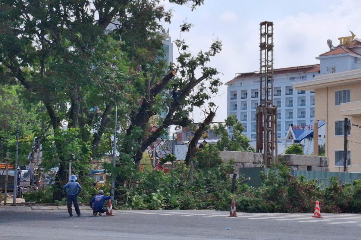 Can Tho - The construction unit is carrying out the pruning, cutting and relocation of 14 green trees to serve the Can Tho City Library project.