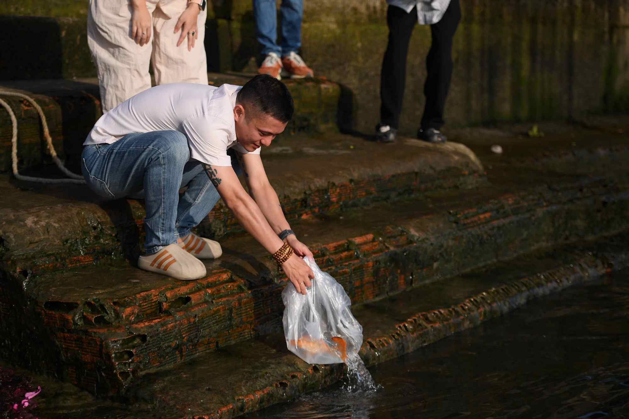 People in Ho Chi Minh City flock to Dieu Phap Pagoda to release fish and release animals