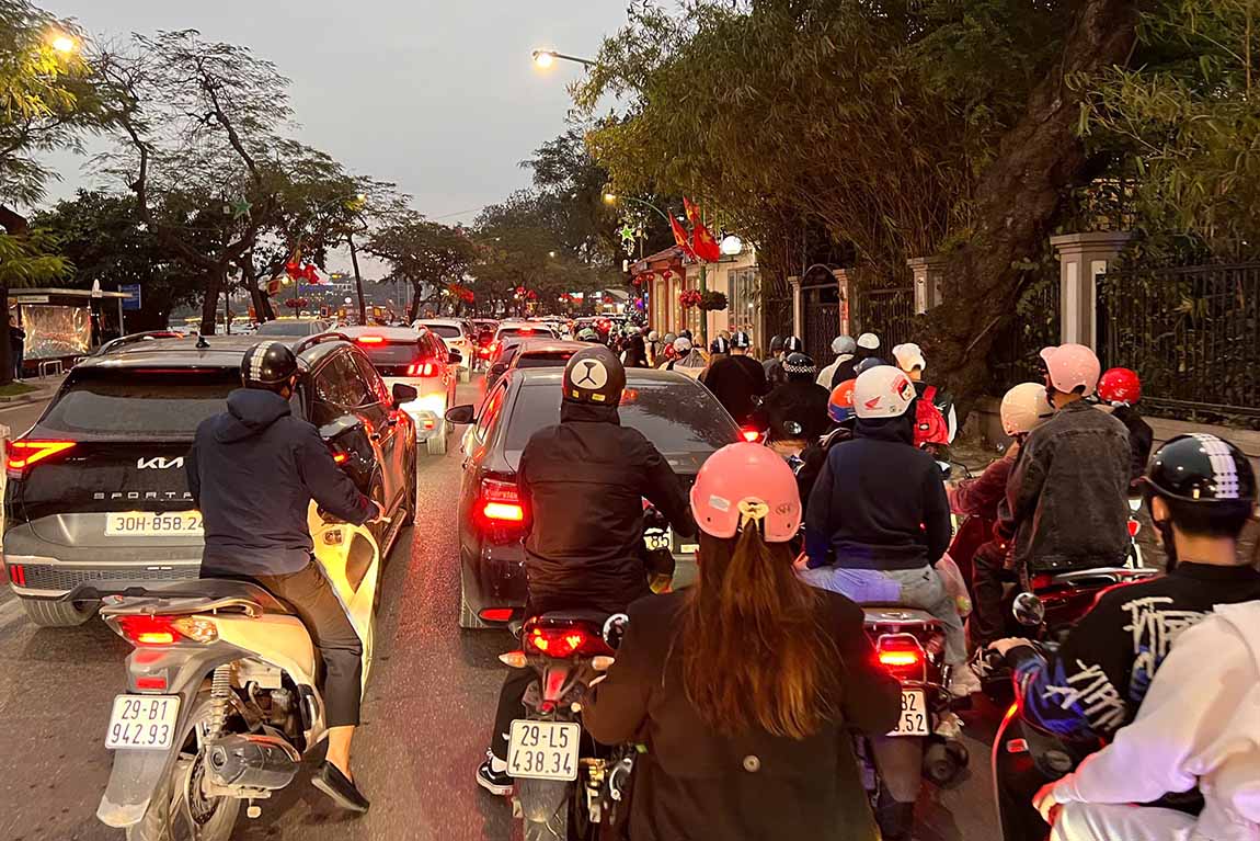 Hanoi Book Street is crowded with people going spring travel at the beginning of the year