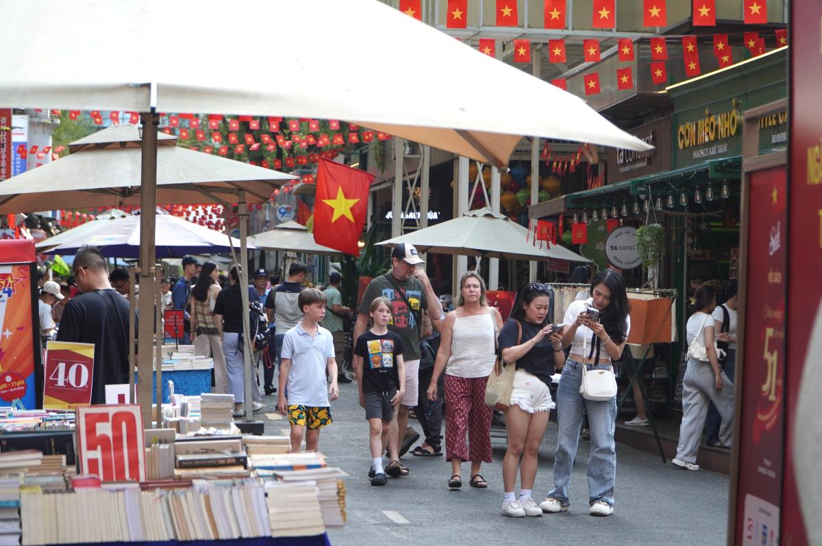 Ho Chi Minh City - On the evening of April 30, the center of Ho Chi Minh City was bustling when crowds of people flocked to Nguyen Hue pedestrian street and Ben Bach Dang park to wait for the fireworks display.