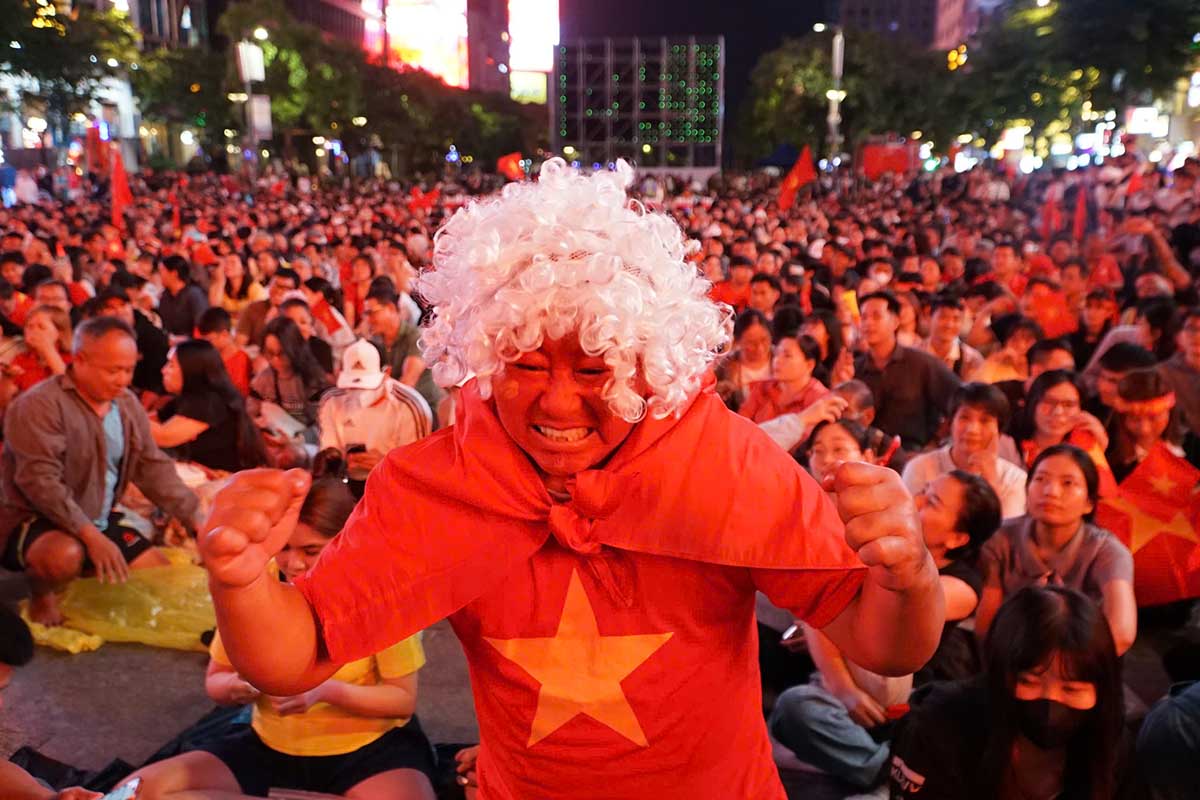 Ho Chi Minh City - Thousands of Ho Chi Minh City fans flocked to Nguyen Hue pedestrian street, carrying flags and flowers excitedly waiting, believing that U23 Vietnam will beat U23 China tonight.