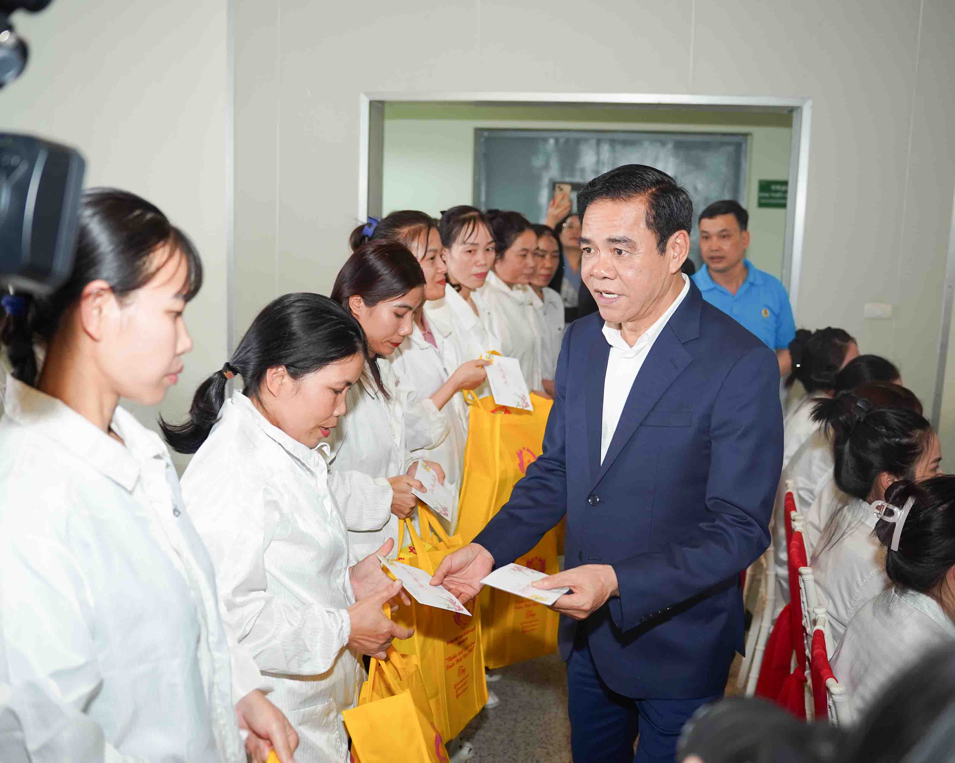 Nghe An - Provincial leadership delegation visits, wishes Tet and presents 70 gifts to workers of BSE Vietnam Electronics Co., Ltd. (Nam Cam Industrial Park).