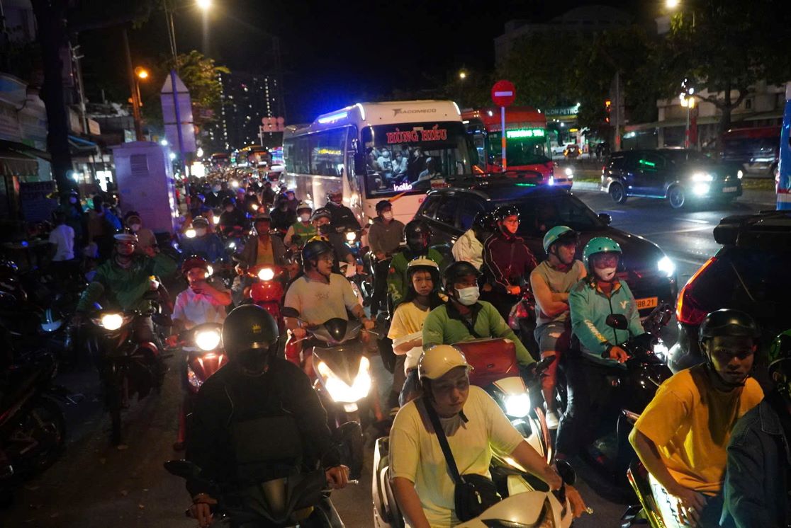 Ho Chi Minh City - Nearly 0:00 on February 23, the road to Mien Tay Bus Station was congested, vehicles lined up slowly in the middle of the night.
