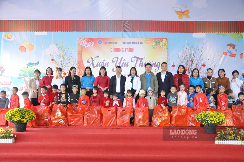 Lao Cai - Cam Duong Ward Trade Union has just coordinated with Viet Hoang Tourism Co., Ltd. to give gifts to students and workers at Hop Thanh Kindergarten.