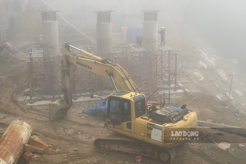 Lao Cai - In the cold weather, fog covering the highlands, many workers are still diligently constructing on the road to Thac Bac tourist area.