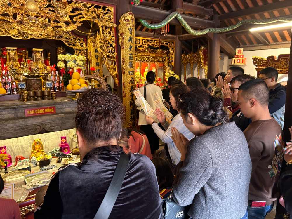 Hanoi people going to temples late in the afternoon still encounter crowded scenes