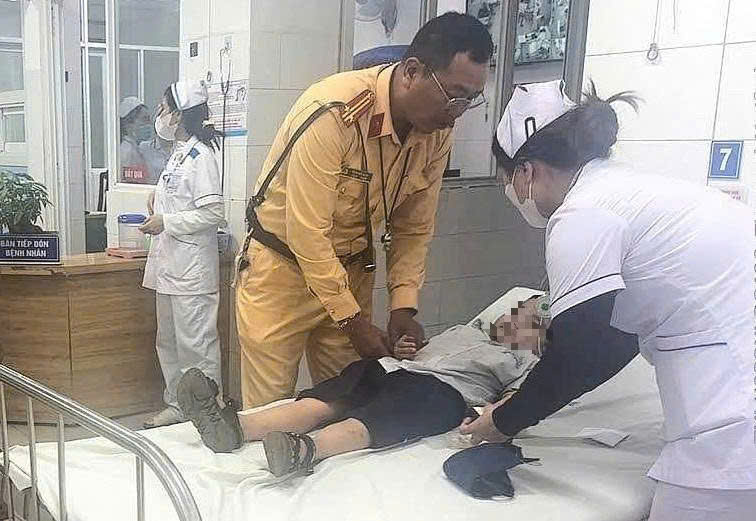 Da Nang - The beautiful actions of Da Nang Traffic Police helped a first-grade student get bitten by a snake through danger.