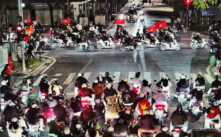Hanoi - On the evening of December 18, thousands of people took to the streets to celebrate U22 Vietnam defeating U22 Thailand 3-2, winning the gold medal at the 33rd SEA Games.