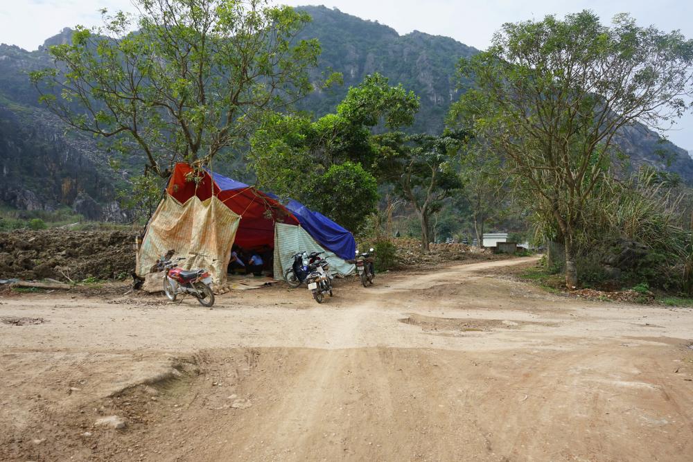 People set up tents for many days to prevent cars from entering the landfill in Thanh Hoa
