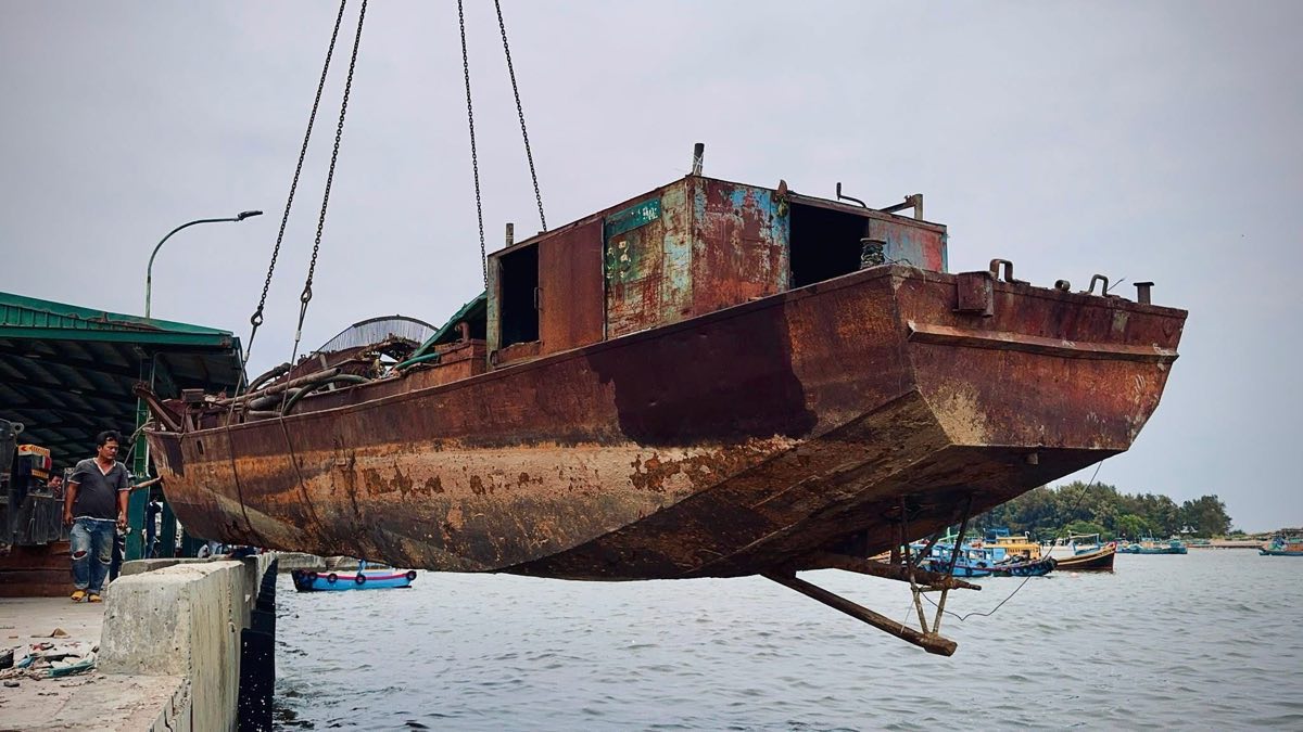 Suspension bridge swept away by floods, Khanh Hoa people cling to ropes to pull boats across the river