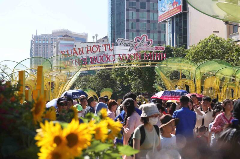 Da Nang - Bach Dang flower street is brilliantly colored with spring colors, a gathering point for people and tourists in the moment of the Binh Ngo New Year transition.