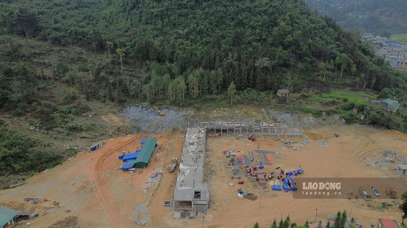 Lao Cai - In Muong Khuong border commune, the construction site of the new high school project is bustling, opening up hopes for improving the quality of education for highland students.