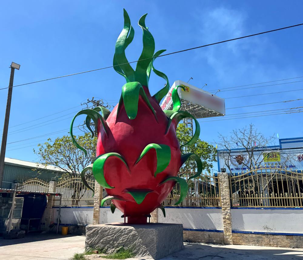 Lam Dong - Giant concrete dragon fruit appearing on roads has created a unique highlight, attracting attention.