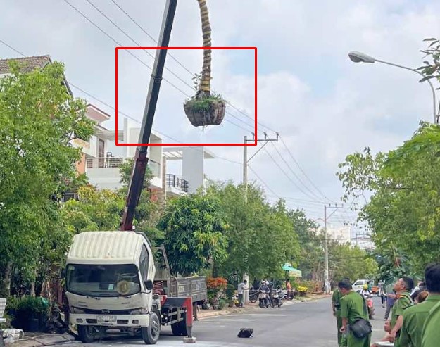 Lam Dong - A crane truck is lifting a tree suspected of touching an electrical wire, causing one person to be electrocuted and burn black and die on the spot.