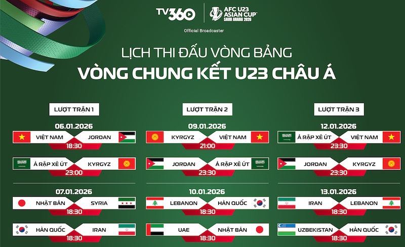 Update the match schedule, live broadcast of the 2026 AFC U23 Championship today (January 13) with the final matches of Groups B and C.