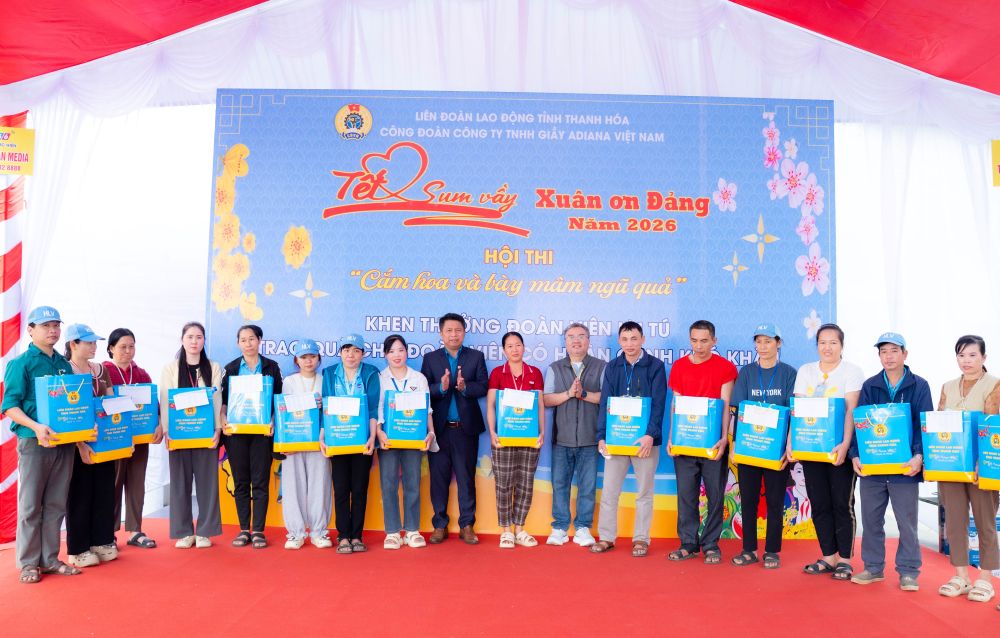 Thanh Hoa - At the program "Tet reunion - Spring of Gratitude to the Party", more than 1,000 Tet gifts were given to union members and workers at Annora Vietnam Shoe Company.