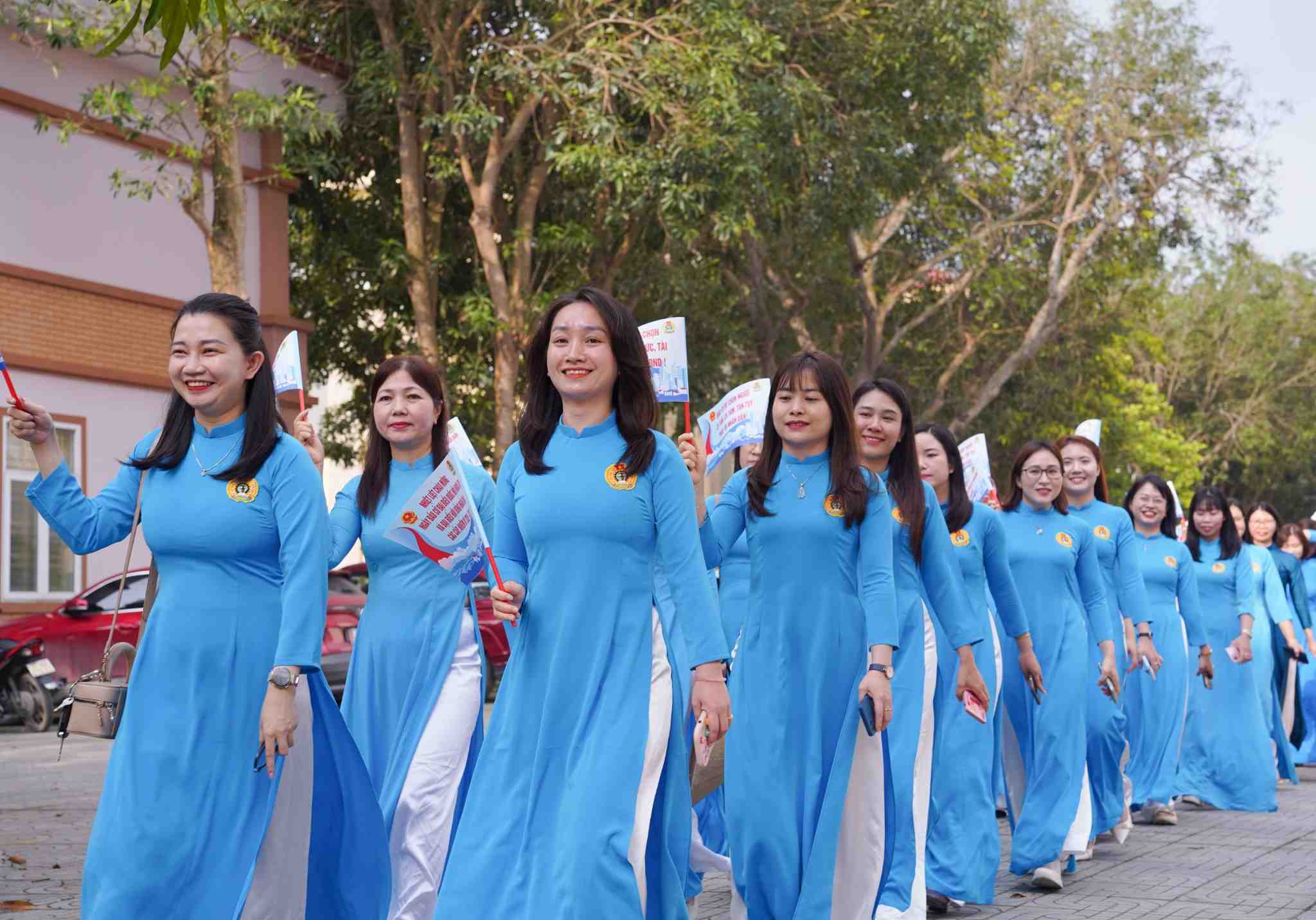 Nghe An - More than 1,200 officials and women's union members of Thanh Vinh ward participate in folk dance performances and ao dai parades on the occasion of International Women's Day 8.