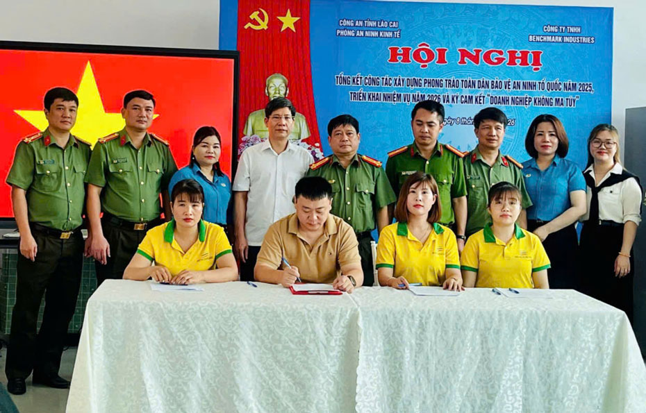 Lao Cai - Benchmark Industries Co., Ltd. has just coordinated with the trade union to organize a conference to summarize the all-people movement to protect national security.