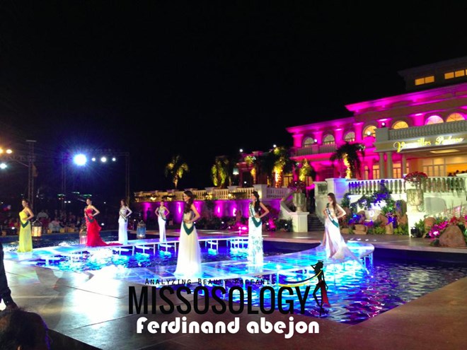21h14: Top 8 Hoa hậu Trái Đất bao gồm: Austria, Korea, Mexico, Thailand, Poland, Philippines, Venezuela and Serbia xuất hiện lộng lẫy trong trang phục dạ hội.