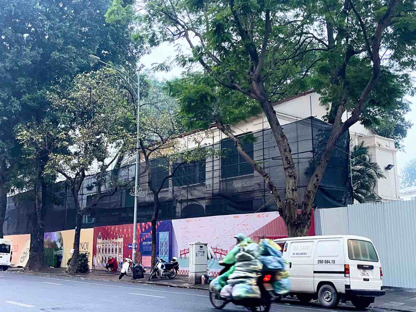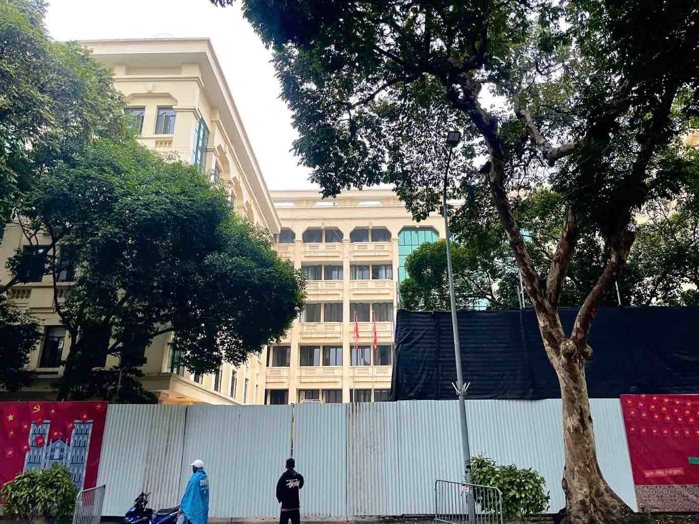The facades of related works located on Tran Nguyen Han and Ly Thai To streets have been closed, and solid fences have been erected.