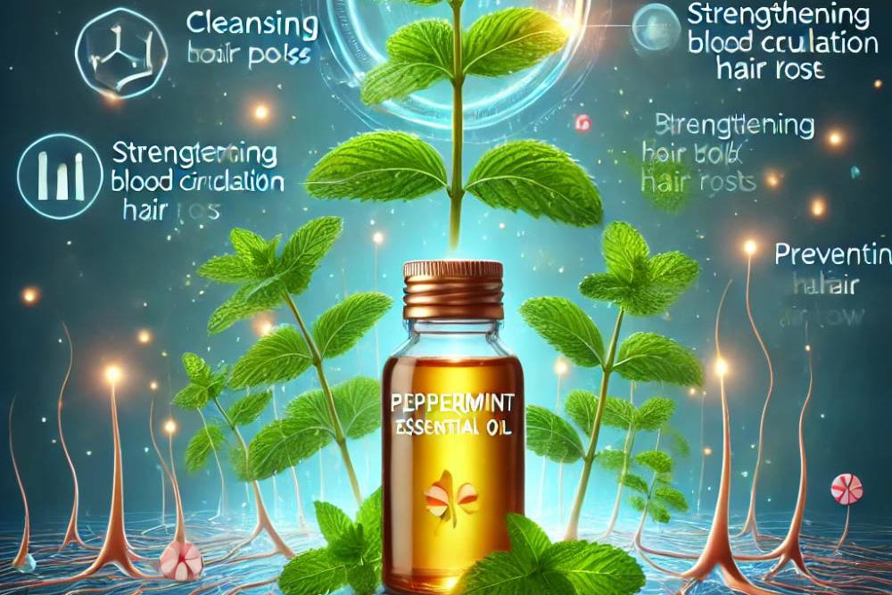 Peppermint essential oil is rich in essential nutrients, which help improve hair follicle health and stimulate hair growth.