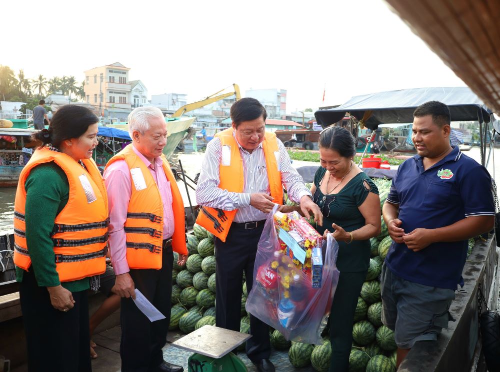 Cần Thơ - 5h30 ngày 31.1, Ban chỉ đạo Phát triển du lịch TP Cần Thơ trao 400 phần quà (mỗi phần quà giá trị 500.000 đồng) cho các thương hồ trên chợ nổi Cái Răng.