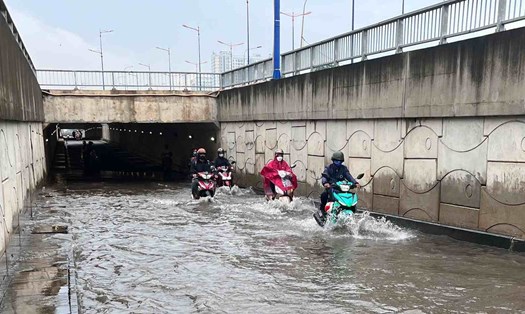 HCMC - After the rain on the afternoon of October 28, the underpass worth more than 70 billion VND in front of the new Mien Dong Bus Station was flooded again, forcing many motorcyclists to turn around.
