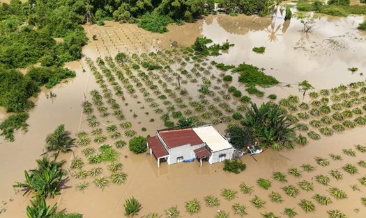 Lam Dong - On the morning of October 28, floodwaters caused traffic congestion on National Highway 1. People use tractors to move people and motorbikes through flooded areas.