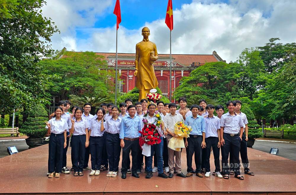 HUE - After becoming the Olympia 2024 Champion, Vo Quang Phu Duc returned to Quoc Hoc Hue High School for the Gifted in the arms of teachers and friends.