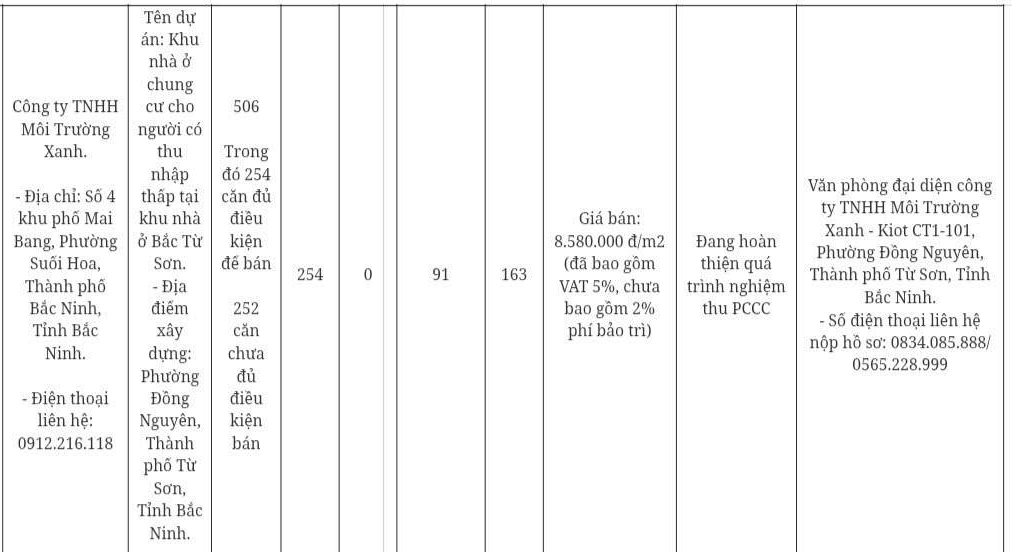 Regarding the issue raised by Mr. Trung, the Department of Construction of Bac Ninh province recently announced a list, selling prices, and application receipt points of 22 social housing projects in Bac Ninh that are eligible for business in October 2025.