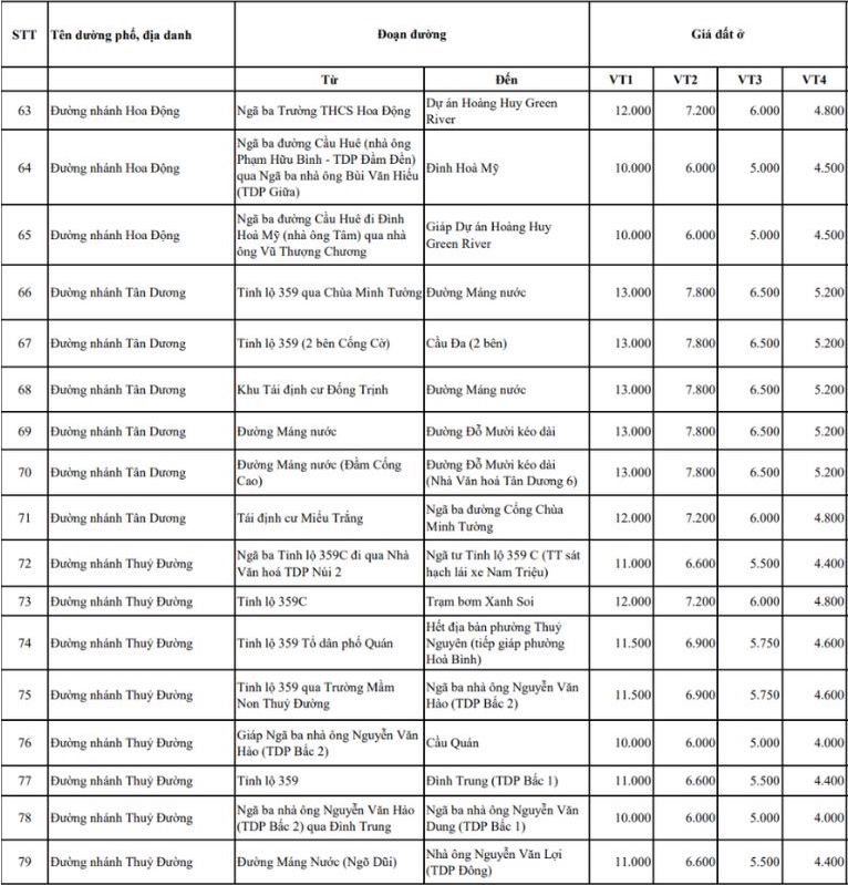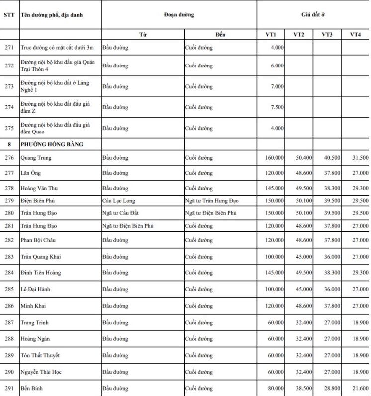 Hoang Van Thu Street (Hong Bang Ward); Dinh Tien Hoang Street (Hong Bang Ward) both announced the price of 145 million VND/m2.