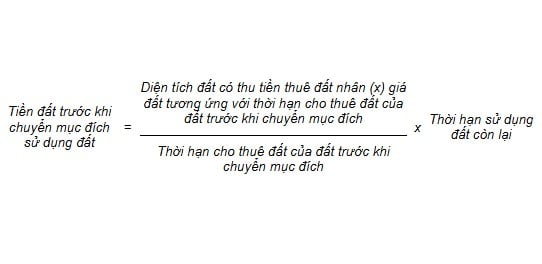 - Land use fee, land rent of land types before changing land use purpose (hereinafter referred to as land fee before changing land use purpose) is calculated according to the provisions of Clause 2, Clause 3 of this Article.