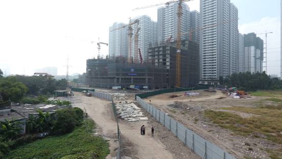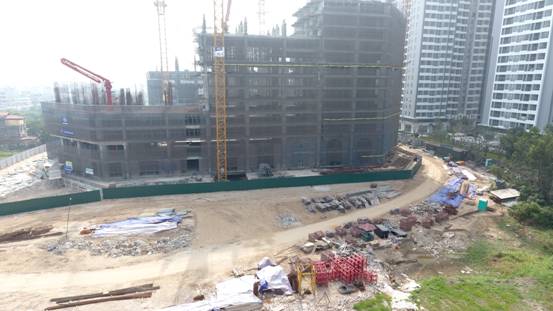 Theo hình ảnh, có toà của Sunshine Garden đã xây thô lên đến tầng 15 và các toà khác thi công ở tầng thấp hơn. Như các báo đã đưa tin, dự án này đột ngột bị dừng là điều bất bình thường chỉ bởi lý do con đường duy nhất để máy móc xe cộ vận chuyển vào công trình đã bị phá huỷ và ngăn cản. Ngăn cản thể hiện rõ tại bức ảnh có hai container chặn ở lối ra vào và phá huỷ là bởi mặt đường bê tong đã bị xới tung lổn nhổn. Ở một động thái khác, chủ đầu tư trước đó đã khẳng định rằng “chúng tôi không thiếu vốn”.