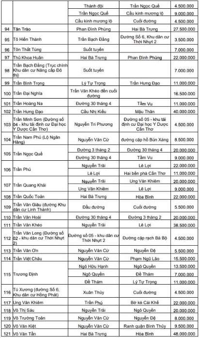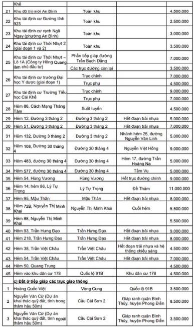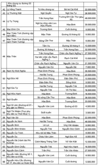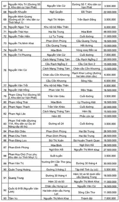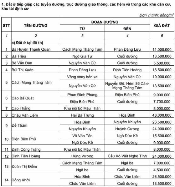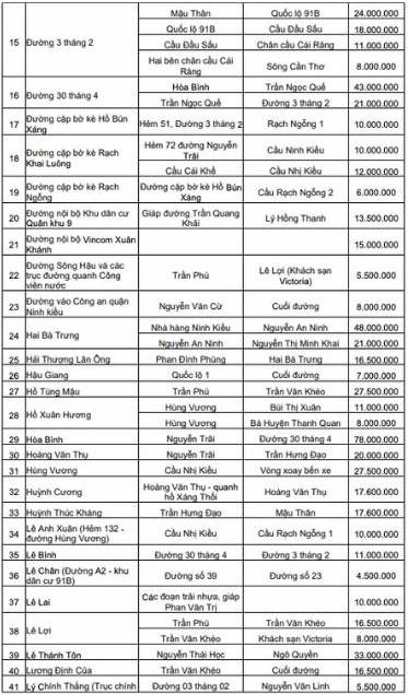 In this land price list, Ninh Kieu ward includes Tan An ward, Thoi Binh ward and Xuan Khanh ward, which are central areas of the city, so the land price is higher than other wards. In particular, on some streets such as Chau Van Liem and Hai Ba Trung, land prices are up to 48 million VND/m2.