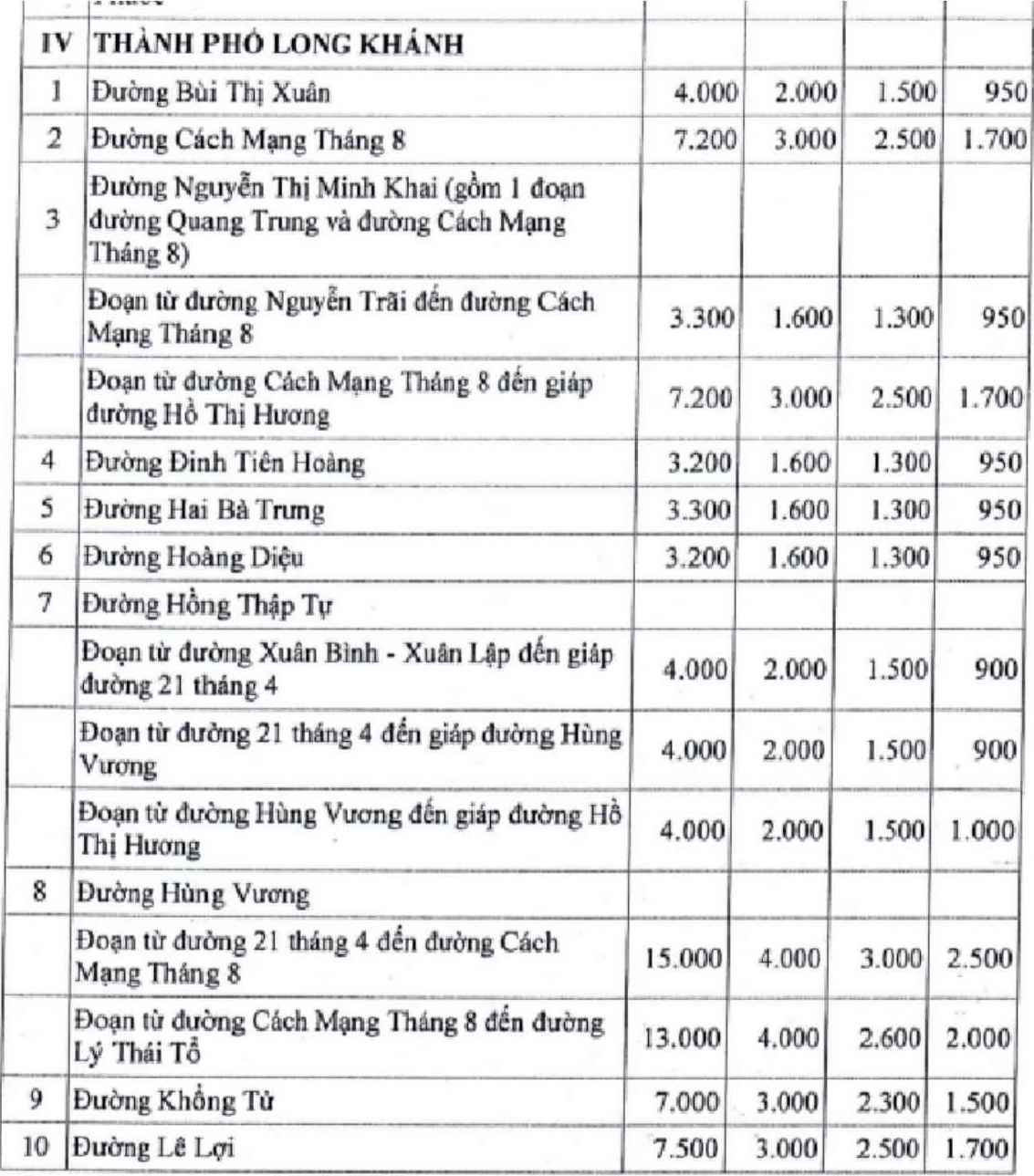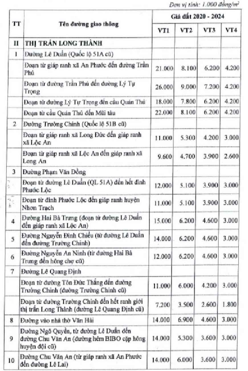 Some roads such as Ha Nam Street (from National Highway 51 to the end of plot No. 141, Land Use Rights Certificate No. 82 to the right and the end of plot No. 8, Land Use Rights Certificate No. 82 to the left, Tam Phuoc Ward), Phuoc Tan - Giang Dien Street, Ham Nghi Street (from National Highway 51 to the end of plot No. 7, Land Use Rights Certificate No. 45 to the right and the end of plot No. 199, Land Use Rights Certificate No. 30 to the left, Tam Phuoc Ward) are priced from 5 million VND/m2.
