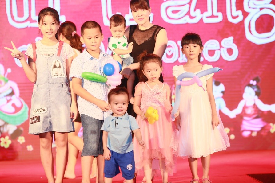 Mẹ con chị Thương cùng các cư dân nhí khác tranh thủ chụp hình trên sân khấu sự kiện |