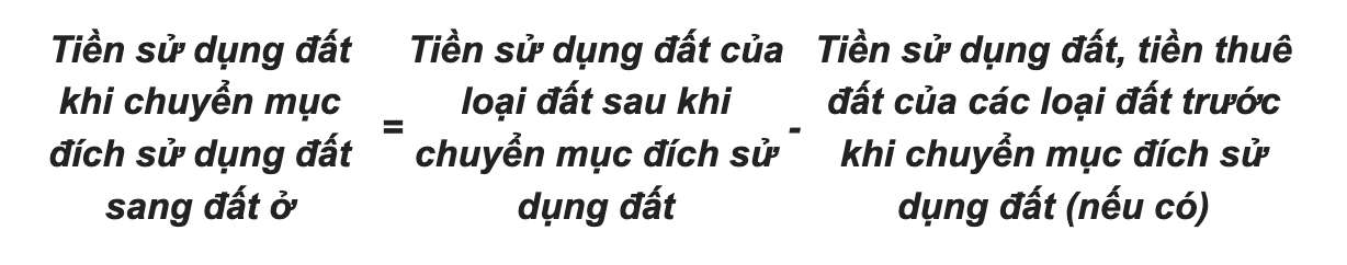 Currently, the formula for calculating land use fees when converting the purpose from agricultural land to residential land is stipulated in Clause 1, Clause 2, Article 8 of Decree 103/2024/ND-CP as follows: