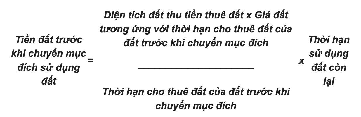 (2) Land use fees and land rents of land types before changing the purpose of use are calculated as follows: