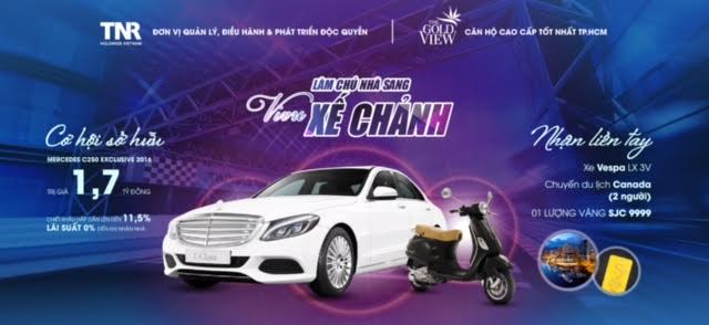 Thêm một yếu tố cần lưu tâm đó chính là các chính sách bán hàng và chương trình ưu đãi được các chủ đầu tư tung ra nhằm hướng đến lợi ích của khách hàng. TNR Holdings Việt Nam đơn vị quản lý điều hành và phát triển độc quyền The GoldView đang dành cơ hội sở hữu xe Mercedes C250 trị giá 1,7 tỷ đồng cho 300 khách hàng sở hữu từ ngày 17/10/2016. Bên cạnh đó, chính sách bán hàng với chiết khấu lên đến 11,5 % và nhiều phần quà giá trị dành cho khách hàng giao dịch thành công từ nay đến 20/11/2016.