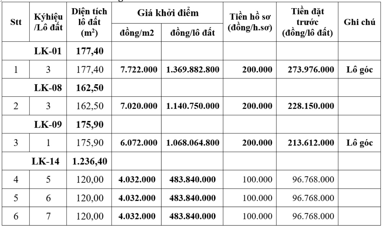 Participants must pay a deposit of VND 96.768 million to VND 273.976 million/plot of land, from October 20 to November 3, 2025.