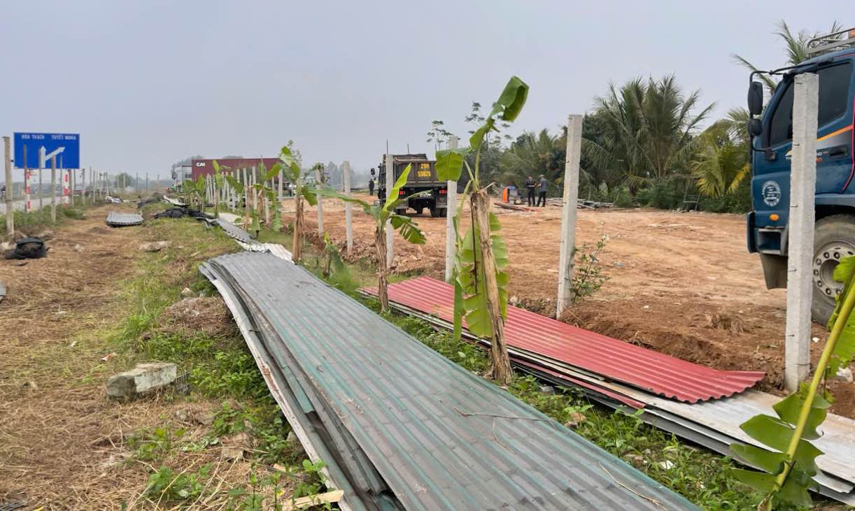 The violating works include: Corrugated iron fences surrounding land plot No. 173 in Dong Soi, with a length of 50m, a height of 1.2m adjacent to Kieu Phu street; three sections of corrugated iron with an average height of 2.5m; corrugated iron roofs covering 2 parts of the area adjacent to Kieu Phu street with a total area of 369.8m2. In addition, on this agricultural land area, there are also waste soil, broken bricks, gravel, and rocks.