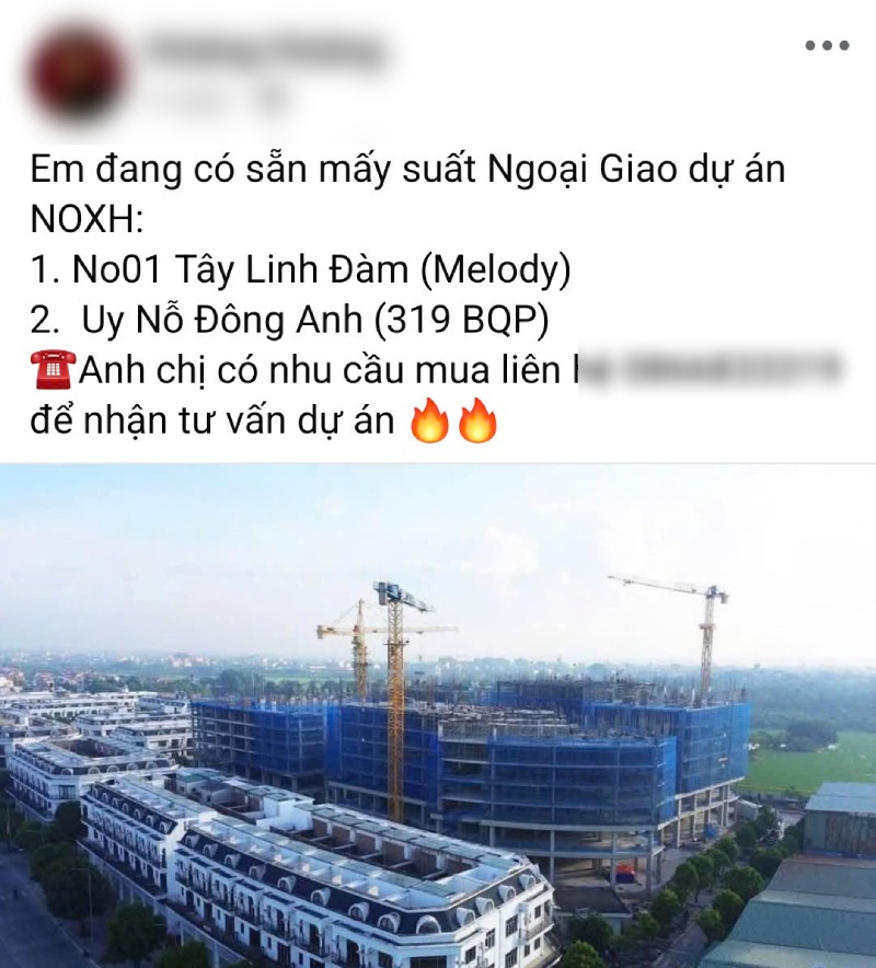 In contrast to the scene of people " struggling" to submit documents, on social networks there are many posts advertising the sale of "diplomatic" social housing in this project.