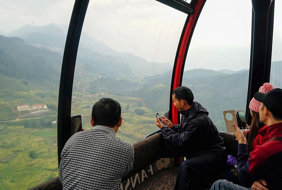 Nếu như mọi năm, người yêu Tây Bắc, yêu Mường Hoa chỉ có thể ngắm lúa chín ở những góc nhìn cận cảnh thì nay, từ cabin cáp treo Fansipan, tín đồ du lịch đã có thể thu trọn tầm mắt cảnh thung lũng vàng đẹp ngất ngây.