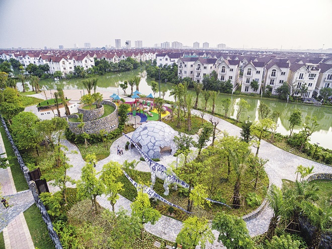 Bước ra khỏi các căn biệt thự, cư dân được hưởng cả một thế giới tiện ích đa dạng đồng bộ theo tiêu chuẩn quốc tế. Mua sắm, vui chơi, giải trí, chăm sóc sắc đẹp đều được đáp ứng toàn diện ngay trong nội khu bằng những dịch vụ đạt chuẩn 5 - 6 sao. Việc tìm môi trường giáo dục chất lượng cũng trở nên dễ dàng khi sống tại Vinhomes Riverside, với trường mầm non Vinschool và trường quốc tế liên cấp BIS chỉ cách nhà vài phút đi bộ, các bậc cha mẹ hoàn toàn yên tâm chọn lựa mái trường cho các con. Mới đây chủ đầu tư còn đưa vào các khu tập gym ngoài trời cùng công viên khủng long, thêm những sự lựa chọn mới cho cư dân về nơi vui chơi, tập luyện.